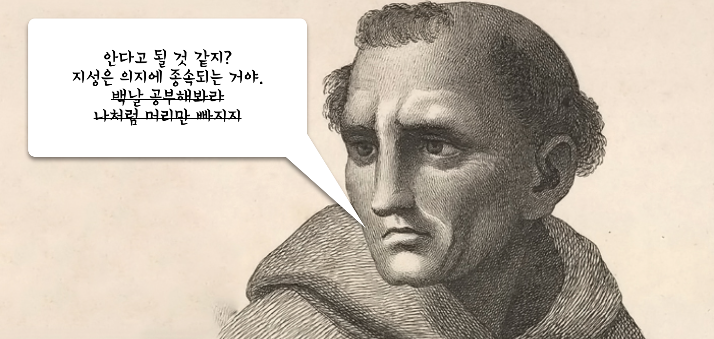 오랜 세월 동안 신학자들은 물론이고 철학자들은 논쟁했었습니다. 주의주의니 주지주의니 하면서요. 무지하게 어려운 논쟁들이 무지하게 오랜 기간 동안 무지하게 많은 사람들을 통해 이루어졌고 무지하게 중요한 변화들을 가져왔습니다. 하지만 말 그대로 무지하게 어려우니 잠깐 심호흡을 하고 안 어려운 척하고 곁눈질하며 슬쩍 다가가봅시다. 주의주의란 건 ‘의지가 먼저다!’라는 입장입니다. 주지주의란 건 반대로 ‘아니야, 지식이 먼저지!’라는 입장입니다. 더 쉽게 말하자면 이런 것입니다. 우리가 하나님을 사랑하지 못하는 건 우리가 알지 못하거나 잘못 알기 때문일까요, 아니면 사랑하고 싶지 않기 때문일까요? 반대로, 우리가 하나님을 사랑할 때 우리는 하나님을 사랑하고 싶어하기 때문에 하나님을 사랑하는 것일까요, 아니면 사랑해야 한다는 사실과 하나님이 누구신지를 제대로 알고 있기 때문에 사랑하는 것일까요? 하나님을 사랑하고자 하는 우리 마음이 먼저일까요, 하나님을 사랑해야한다는 사실을 제대로 아는 우리의 지식이 먼저일까요? 우리 행동을 좌우하는 건 뭘까요? 이 의문이 풀리면 바로 행동으로 돌입하면 될 것 같은데 말이죠!