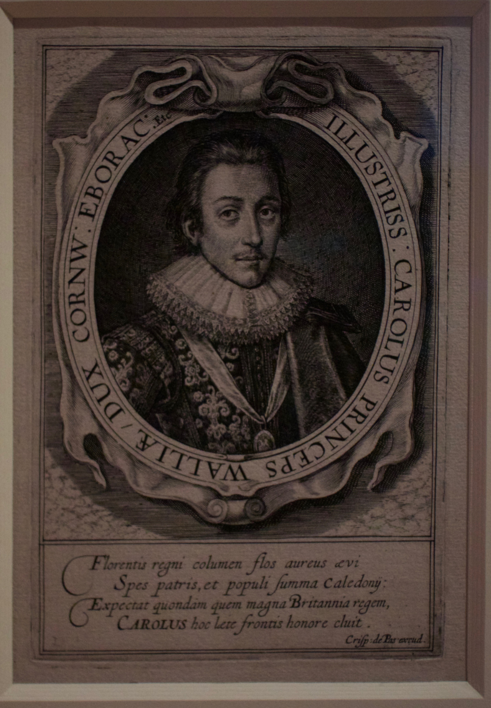 이 판화는 찰스 1세가 왕이 아니라 웨일즈 공이던 20대 초기의 젊을 적 모습을 보여준다. 그는 정교하게 수놓은 윗옷과 러프를 입고 그가 가터 가시단의 기사라는 것을 상징하는 레서 조지(말 등에 앉아 용을 죽이는 성 조지가 그려진 뱃지)라 불리는 팬던트를 차고 있다. 1612년 그의 형이자 왕좌의 후계자인 헨리 왕자가 죽었을 때 찰스의 운명은 바뀌었다. 이 판화는 스튜어트 왕가를 이어가고 영국을 효과적으로 다스릴 걸출한 장래의 왕으로 이 왕자를 묘사하고 있다.