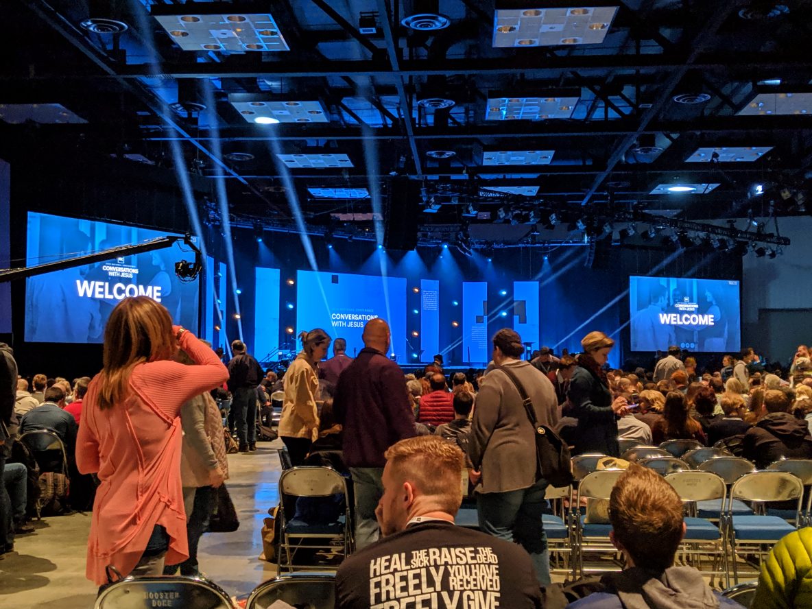 수많은 사람들이 인디애나폴리스 컨벤션센터에 응집했습니다. 모두 기대에 가득찬 표정입니다. 감사하게 내려오는 길은 안전했습니다. 다만 아침에 출발하기 전에 지갑을 잊어버리는 바람에 한바탕 난리를 쳤네요. 그런데 잊어버린 줄 알고 의기소침한 채 운전하다가 중간에 주유하러 들린 주유소에서 찾았답니다;; 드라이브로 3시간 반 걸렸네요. 그런데 1시간 시차가 있어서 4시간 반 걸렸습니다. 그렇게 우여곡절 끝에 도착한 TGC ’19! 컨벤션 센터에 들어가서 등록을 하고 본 회의장으로 들어섰습니다. 마구마구 세련된 느낌은 아니지만 그래도 굉장한 규모를 자랑합니다. 구체적으로 몇 명이나 왔는지는 잘 모르겠습니다. 그래도 만 명 가까이 오지 않았나 싶습니다.