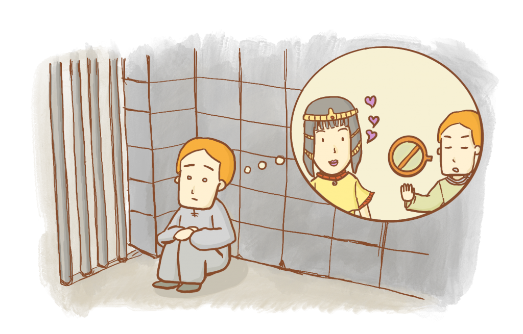 요셉은 감옥에서 풀려나는 신하에게 자신이 억울하게 감옥에 갇혀 있으니 도와달라고 부탁했어요. 그런데 안타깝게도 술을 관리하는 신하는 감옥에서 풀려난 후 요셉의 부탁을 잊어버렸습니다. 요셉은 얼마나 슬펐을까요!