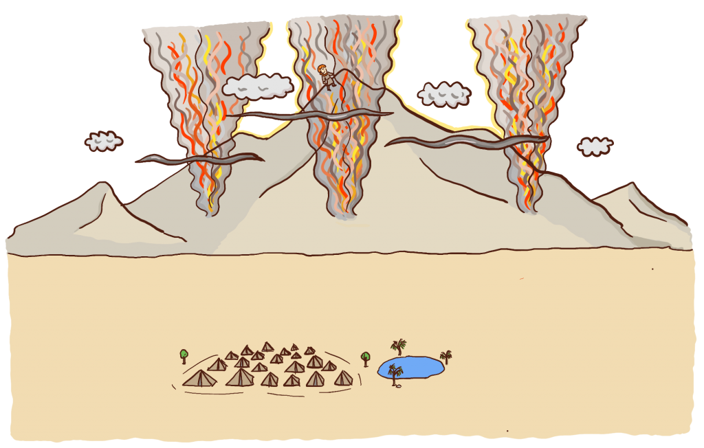 하나님은 시내산이라는 곳에서 자신을 드러내시기로 하셨어요. 하지만 하나님은 너무 위대하고 거룩한 분이셔서 죄가 있는 사람들이 가까이 갈 수는 없었어요.