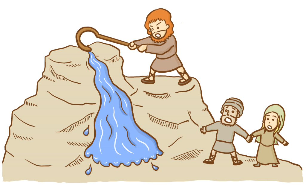 하지만 여전히 사람들은 힘든 일이 생기면 불평을 하곤 했어요. 이번에는 마실 물이 떨어졌다고 화를 냈죠. 모세에게 왜 이집트에서 자신들을 데리고 나왔냐고 따지기까지 했답니다.