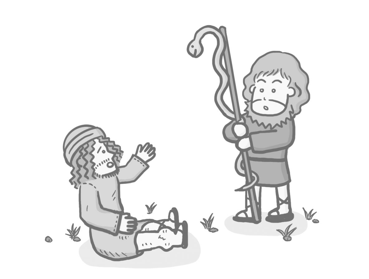 모세는 하나님 말씀대로 놋뱀을 만들어서 긴 나무 막대기에 달아서 사람들이 쉽게 쳐다 볼 수 있도록 세워놨어요. 어떻게 되었을까요? 모세가 전하는 하나님의 말씀을 믿고 놋뱀을 쳐다본 모든 사람들을 죽지 않고 상처가 나았답니다.