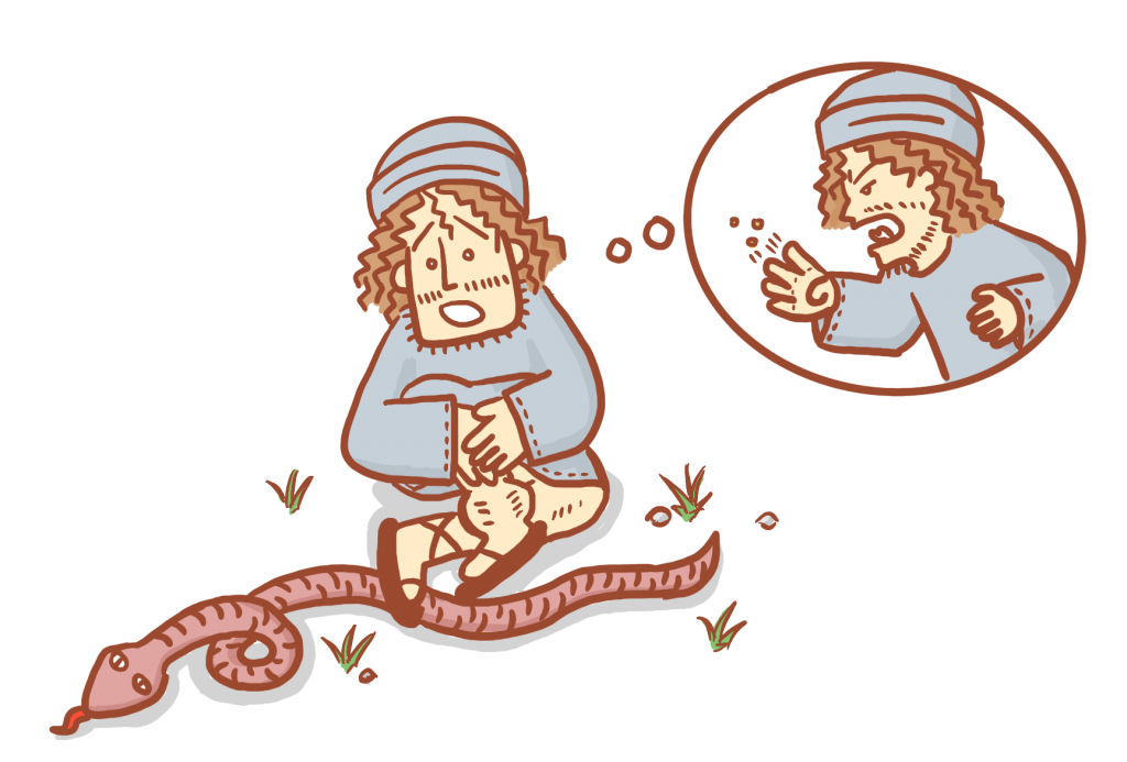 이스라엘 사람들은 자신들이 저지른 잘못에 대해 벌을 받을 수 밖에 없었어요. 하나님은 그들에게 불뱀들을 보내셨어요. 그 뱀에게 물리면 독이 퍼져서 죽게 되는데, 불평하던 많은 사람들이 불뱀에게 물리게 되었습니다.