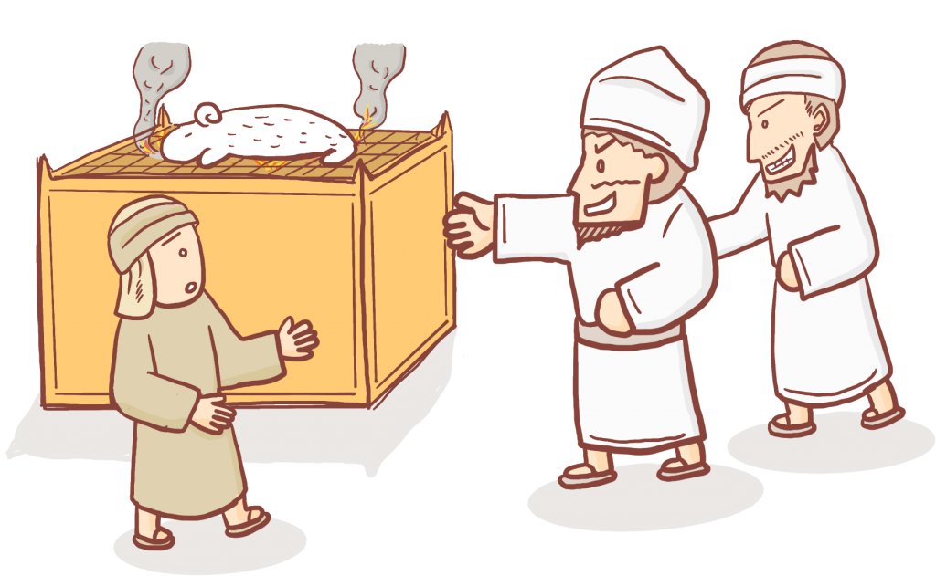 하지만 엘리의 아들들은 그 일을 제대로 하지 않았어요. 오히려 사람들이 예배를 제대로 드리지 못하게 방해했죠. 이때는 예배를 드리려면 소나 양을 잡아서 제사를 지내야 했어요. 하지만 엘리의 아들들은 예배에는 관심이 없었죠. 그래서 하나님이 정하신 방법을 무시하거나 또는 예배를 제대로 드리기 전에 자기들이 먹고 싶은 고기 부위를 가져가 버리곤 했어요. 엘리의 아들들은 다른 사람들도 예배를 제대로 돕지 못하도록 방해하기까지 했어요. 그들은 이스라엘이 하나님을 잘 알아가도록 도와주는 중요한 일을 맡았는데 오히려 이 일을 방해한 거에요.