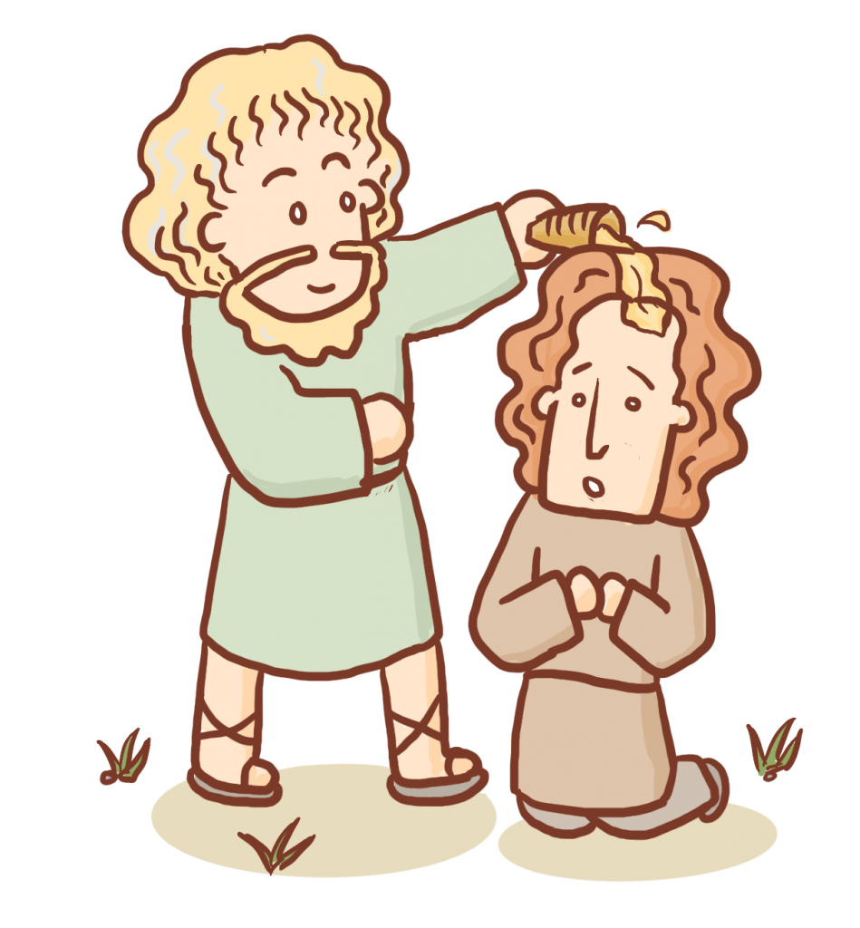 사울은 키가 큰 사람이었는데, 아버지의 잃어버린 나귀들을 찾아 길을 헤메고 있었어요. 그러다가 선지자 사무엘에게 도와달라고 요청했어요. 사무엘은 나귀들은 이미 아버지가 잘 찾았다고 말했어요. 그러고는 사울을 따로 불러다가 머리에 기름을 부었어요. 하나님의 특별한 부르심을 받았다는 표시였어요. 사무엘은 하나님이 사울을 왕으로 세우셨다고 말했습니다.
