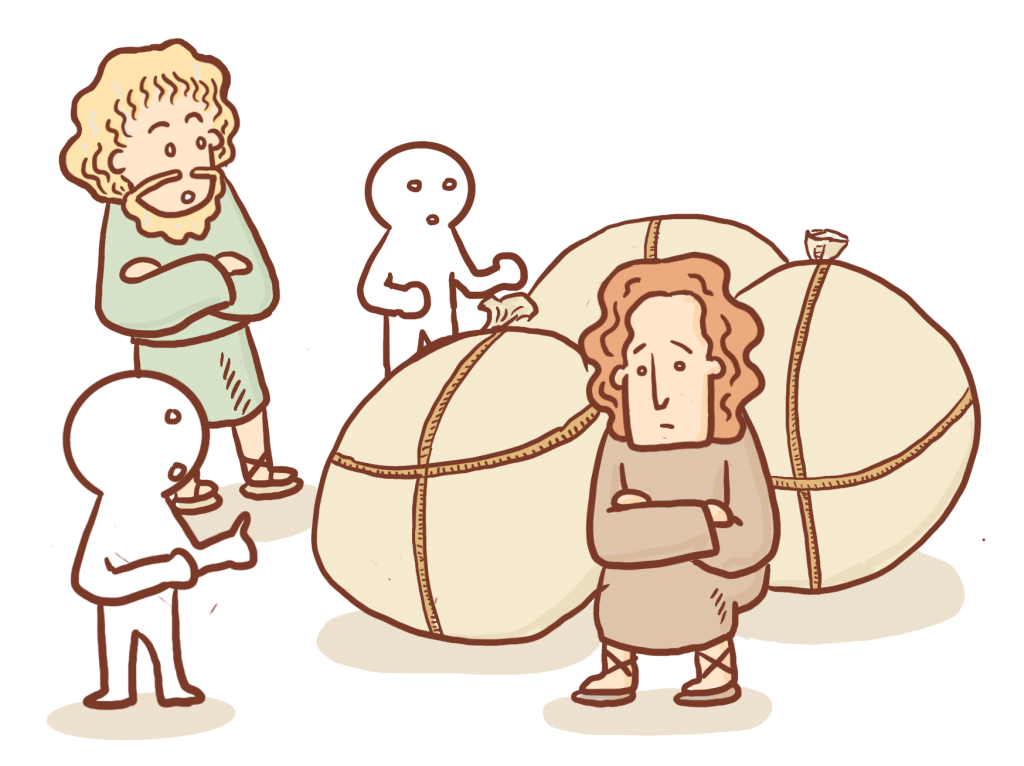 사울은 짐 보따리 사이에 숨어 있었어요. 그 동안 이스라엘에는 왕이 없었기 때문에, 사울은 자신이 이스라엘의 첫 번째 왕이 된다는 사실이 마냥 기쁘지만은 않았어요. 오히려 걱정하고 두려워했어요. 그래서 왕이 된 이후에도 사울은 처음에는 왕처럼 행동하기 보다는 평소와 똑같은 모습으로 살았습니다. 이스라엘이 기대했던 강력한 모습은 아니었을 거에요. 그래서 사울을 무시하는 불량배 같은 사람들도 있었답니다. 하지만 사울은 크게 신경쓰지 않았어요.