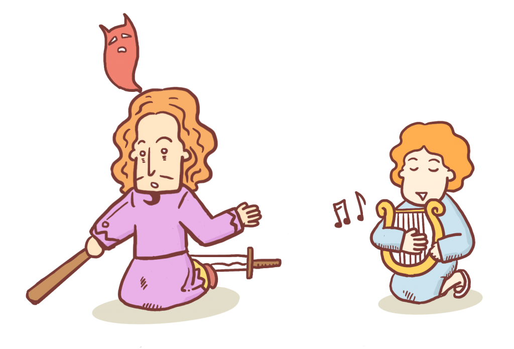 다윗이 수금을 연주하자, 거짓말 같이 사울의 마음이 평안해졌어요. 다윗의 연주 실력이 좋기도 했지만, 하나님을 사랑하고 하나님의 사랑을 받는 사람이었기 때문에 쉽게 악령을 쫓아낼 수 있었을 거에요. 그리고 사울은 다윗이 연주를 하는 동안에는 악령에게 시달리지 않아도 되었습니다.
