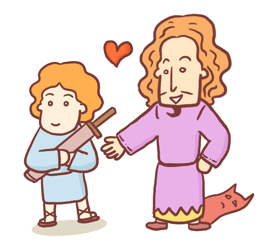 마음의 평화를 찾은 사울은 크게 기뻐했어요. 그래서 다윗을 칭찬했고, 다윗을 좋아하게 되었습니다. 그래서 사울은 다윗을 단지 수금 연주하는 사람으로만 사용하지 않고, 자신의 무기를 드는 자로 임명했어요.