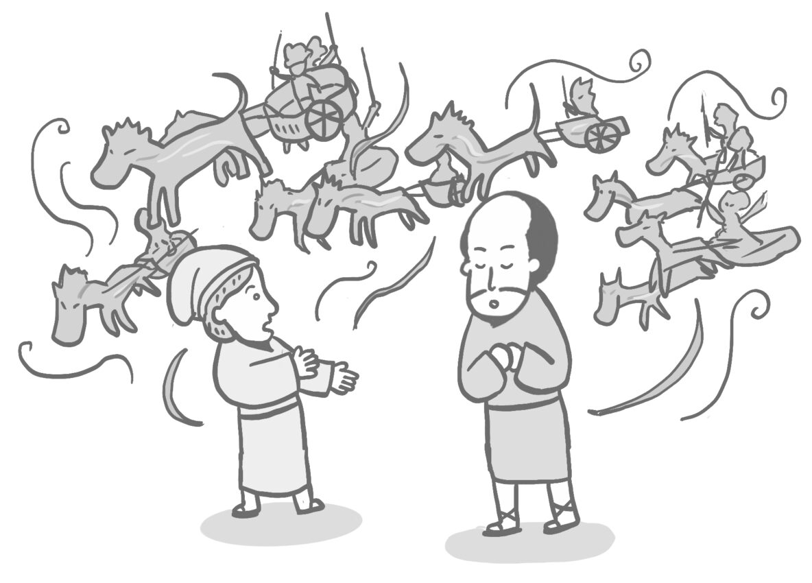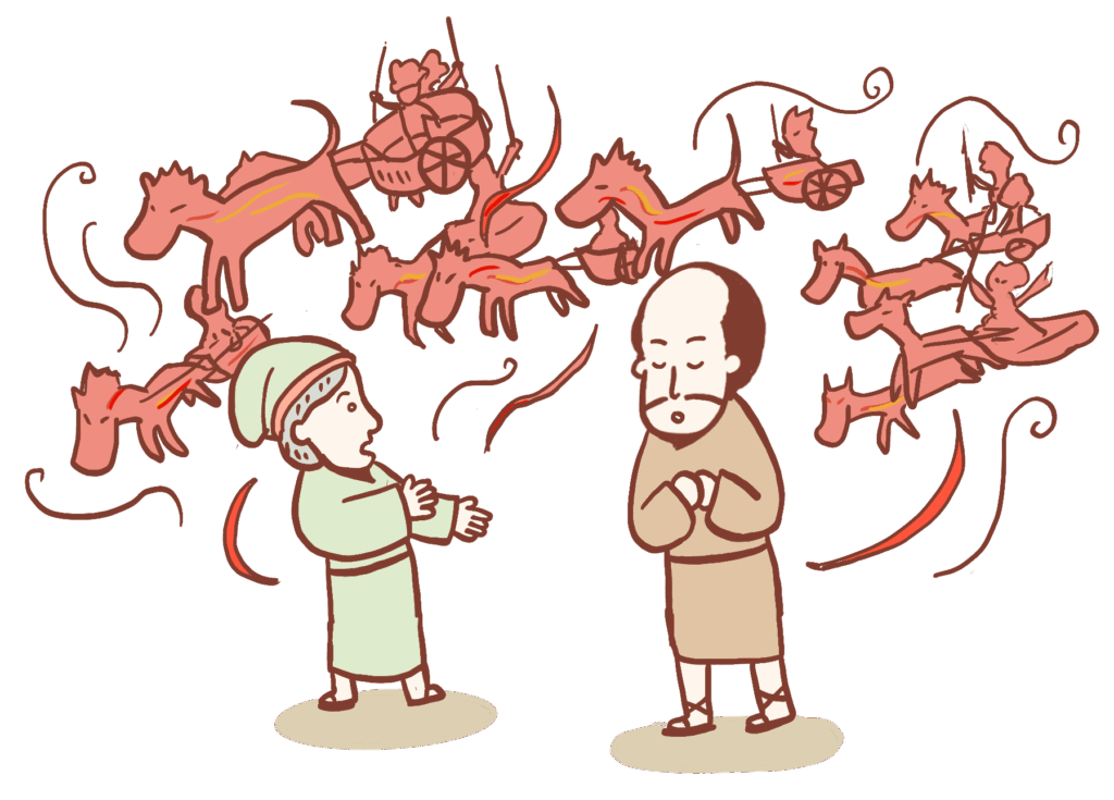 사환이 잘 믿지 못하자 엘리사는 하나님께 기도했어요. 사환이 믿음이 없으니, 사환의 눈을 열어서 하나님이 어떻게 그들을 지켜주시는지 보여달라고 말이에요. 그리고 하나님은 엘리사의 기도를 들어주셨어요. 이제 사환의 눈에도 보이지 않던 것들이 보이게 되었어요.