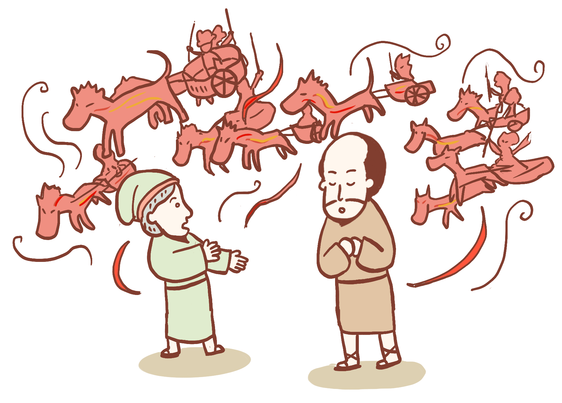 아람 왕의 신하 중 한명이 이스라엘의 비밀을 알려줬어요. 엘리사라는 선지자 때문에 아람이 이스라엘을 공격하기가 너무 어려운 거라고 말이에요. 그래서 아람 왕은 작전을 바꿨어요. 이스라엘을 정복하기 위해서는 먼저 엘리사를 없애야겠다고 결심하게 된 거죠. 그래서 엘리사가 어디에 있는지 찾아본 다음에 재빠르게 많은 군사들을 엘리사 선지자가 있는 곳으로 보냈어요.