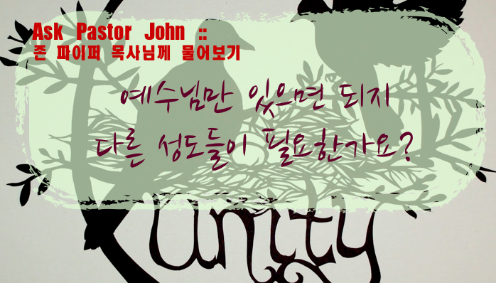 하나님은 자신의 은혜가 직접적으로는 말씀을 읽고 기도하는 것으로 전달되도록 하셨고, 간접적으로 Ask Pastor John(존 파이퍼 목사님께 물어보기)를 통해서 전달되도록 하셨습니다. 만일 오늘 이 주제의 질문을 저에게 누군가 한다면, 그들이 그런 질문을 제게 할 이유가 있을까요? 그냥 하나님께 가면 됩니다. 여러분은 제가 필요하지 않을겁니다. 그러나 여러분은 저를 필요로 합니다. 여러분들에겐 목사가 필요합니다. 여러분들은 친구들이 필요합니다. 모두가 사람들을 필요로 합니다.